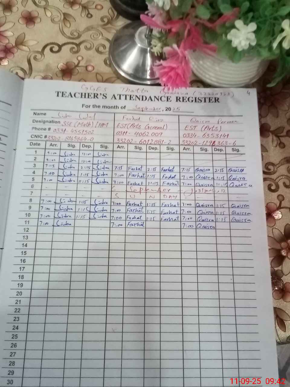 | Name: SI**** SA**** Designation: (School Headmaster's/Headmistress's) SSE MATH Phone/Cell Number: 03**** |