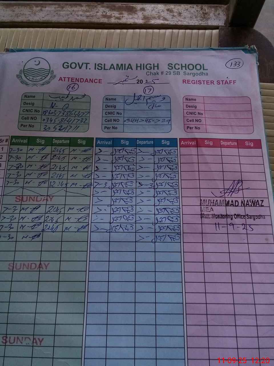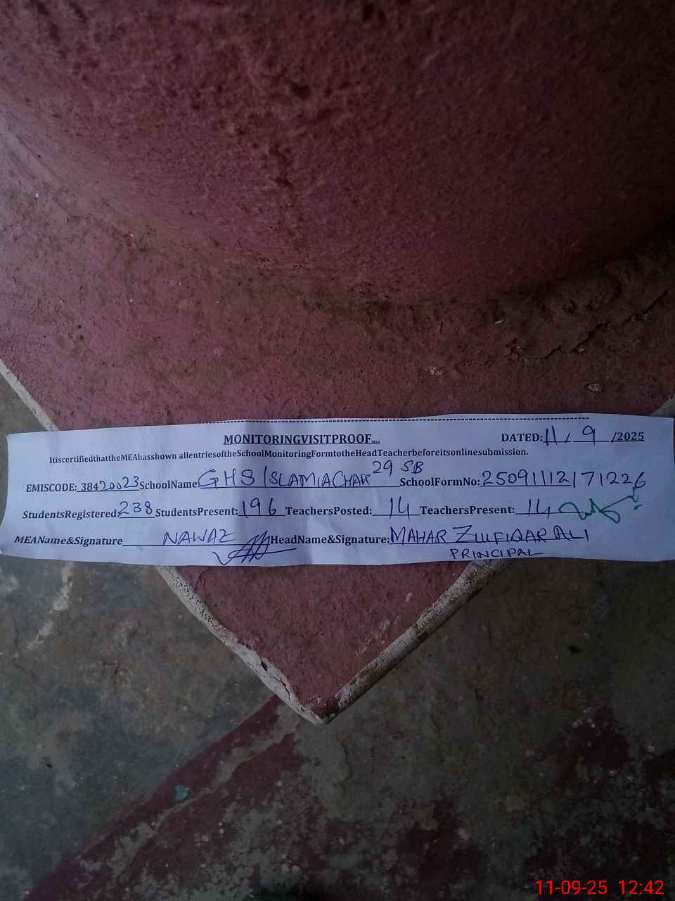 | EMIS Code: 38420023 | Name of School: GHS ISLAMIA CHAK NO.29 SB | |||