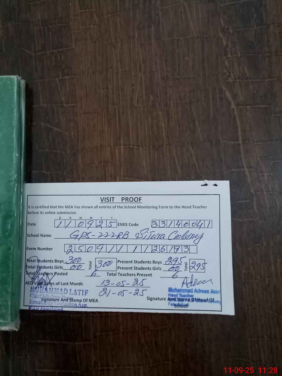 | EMIS Code: 33140041 | Name of School: GPS 222 RB SITRA COLONY | |||