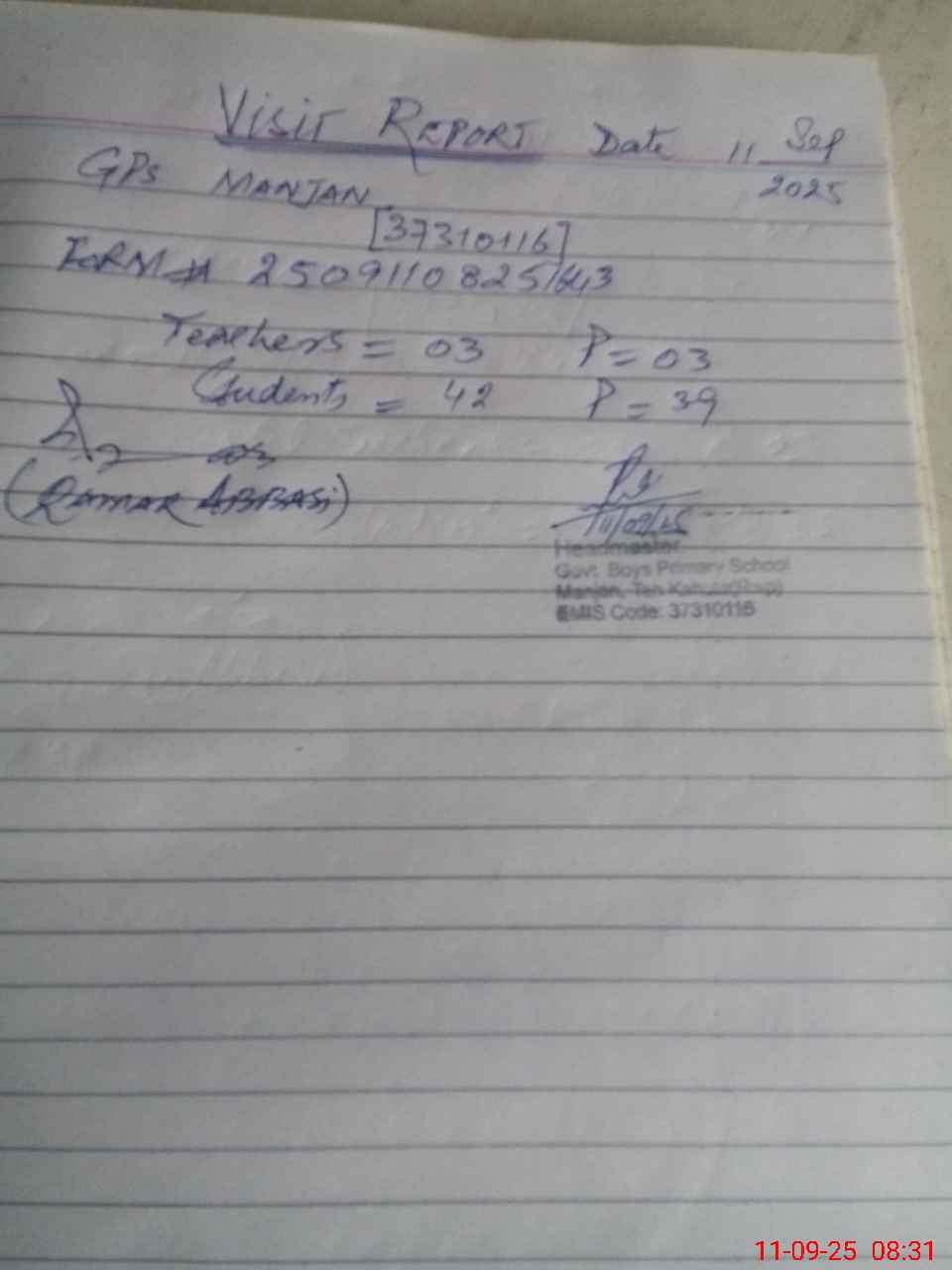 | EMIS Code: 37310116 | Name of School: GPS MANJAN | |||