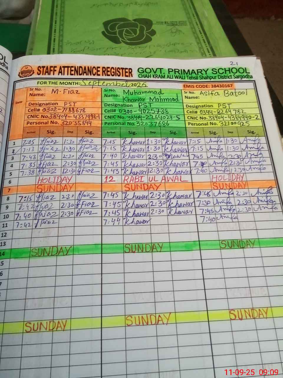 | Name: MU**** FI**** Designation: (School Headmaster's/Headmistress's) PST Phone/Cell Number: 03**** |