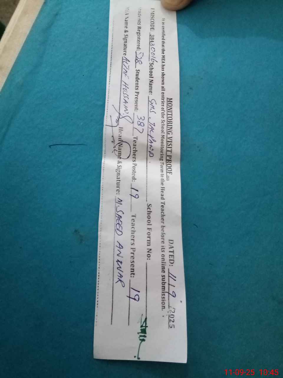 | Name: MU**** SA**** AN**** Designation: (School Headmaster's/Headmistress's) Sr. HEADMASTER Phone/Cell Number: 03**** |