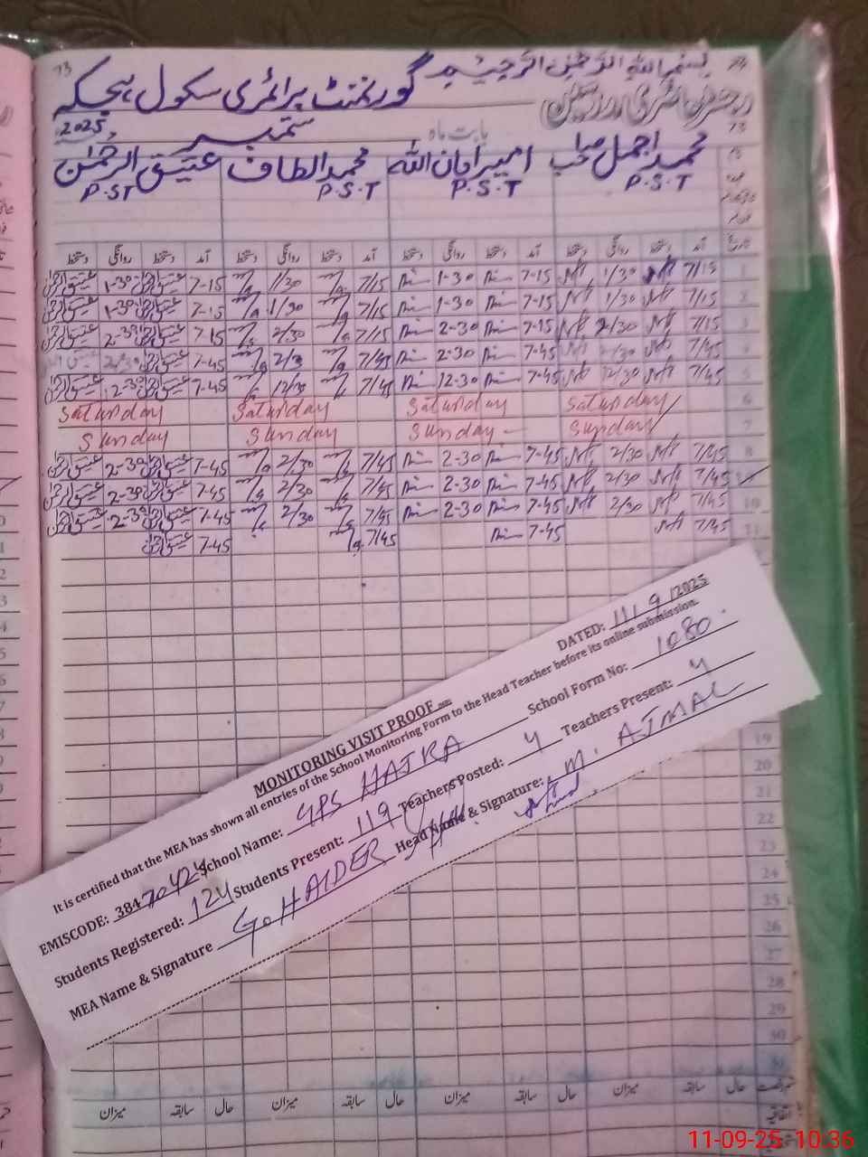 | Monitoring Date: 11-09-2025 | Start Time: 11-09-2025 09:57 AM | End Time: 11-09-2025 10:39 AM | Name of MEA: GH**** HA**** | |