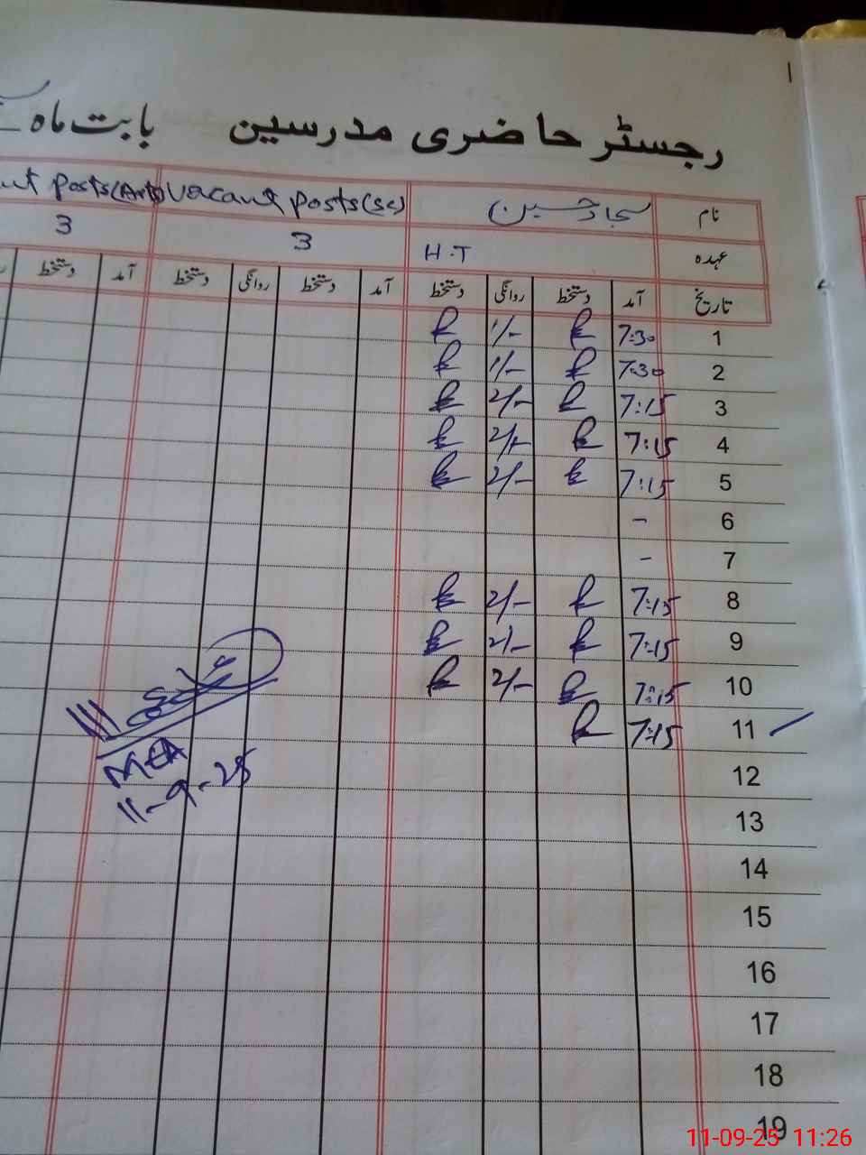 | Name: SA**** HU**** Designation: (School Headmaster's/Headmistress's) PST Phone/Cell Number: 03**** |