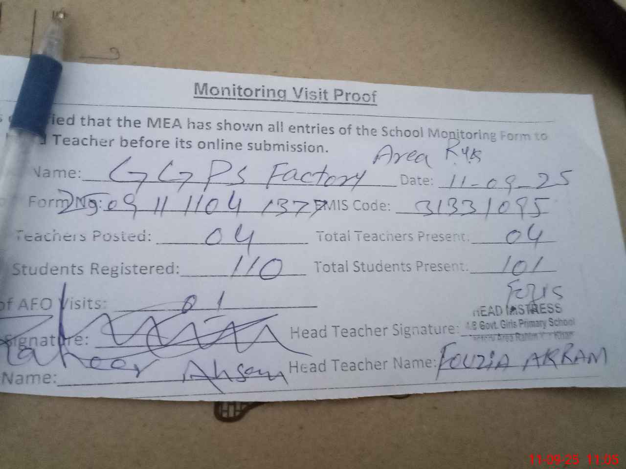 | EMIS Code: 31331095 | Name of School: GGPS MC FACTORY AREA | |||