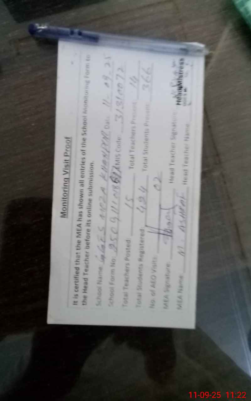 | Attendance Register | Head Teacher | MEA with School | Visit Proof |
