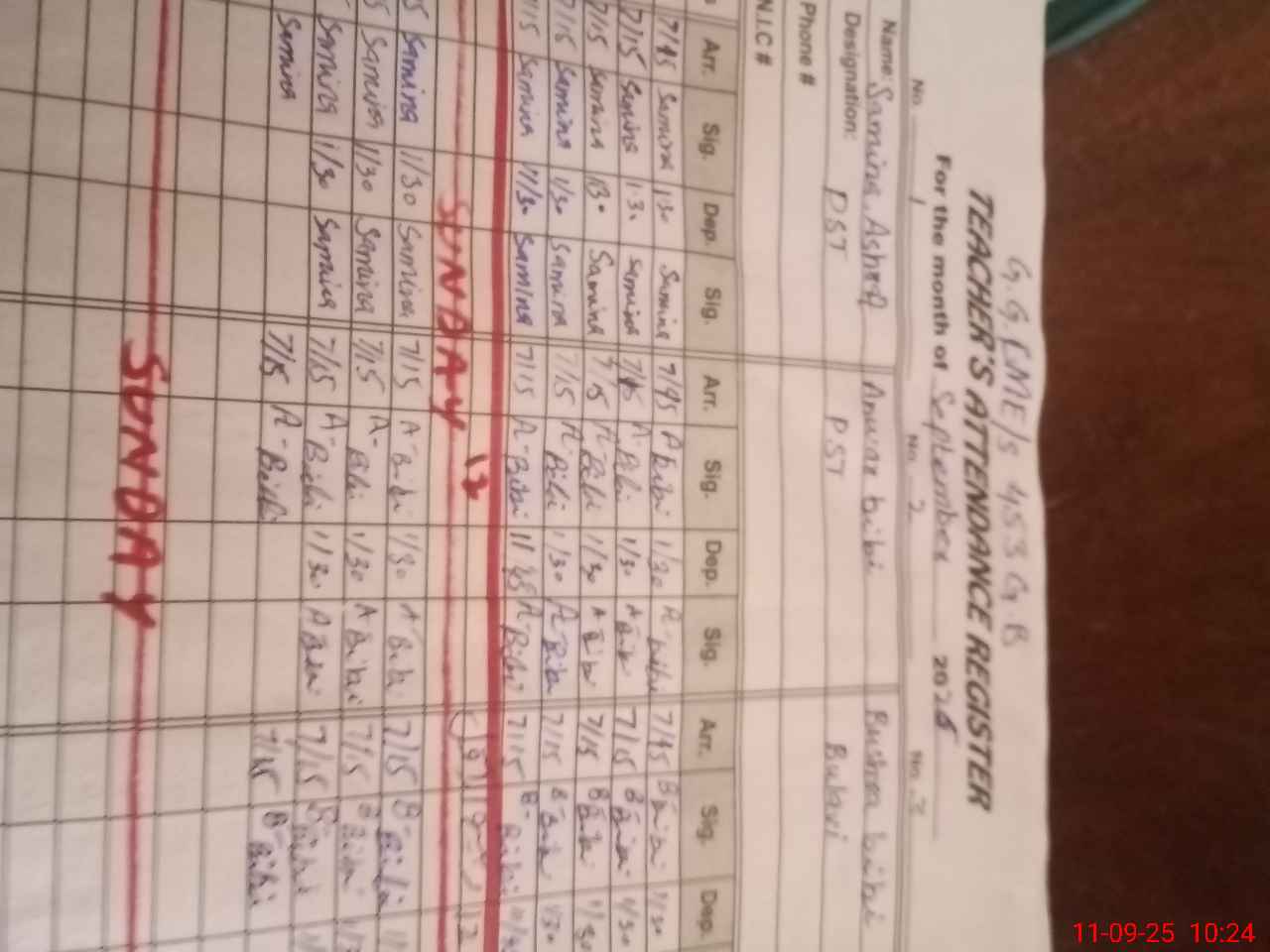 | Name: SA**** AS**** Designation: (School Headmaster's/Headmistress's) PST Phone/Cell Number: 03**** |