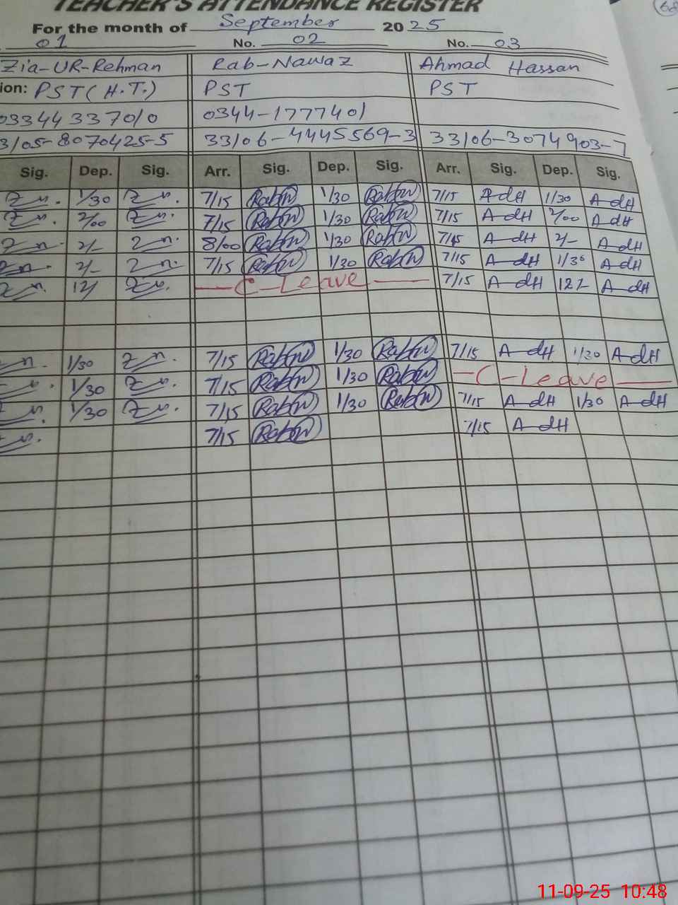 | Name: ZI**** URRE**** Designation: (School Headmaster's/Headmistress's) PST Phone/Cell Number: 03**** |
