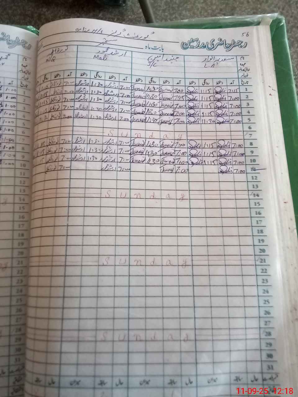 | CNIC | Full Name | Designation | R/C | Absence During Last Calender Month |