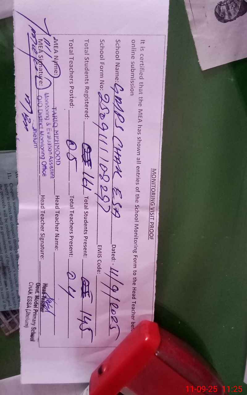 | EMIS Code: 37210289 | Name of School: GMPS CHAK ISA | |||