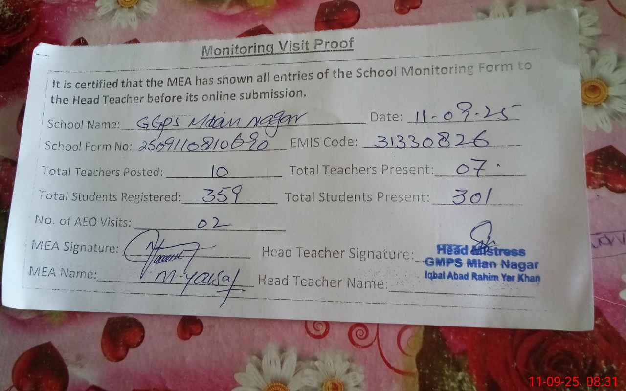 | EMIS Code: 31330826 | Name of School: GMPS MIAN NAGAR | |||