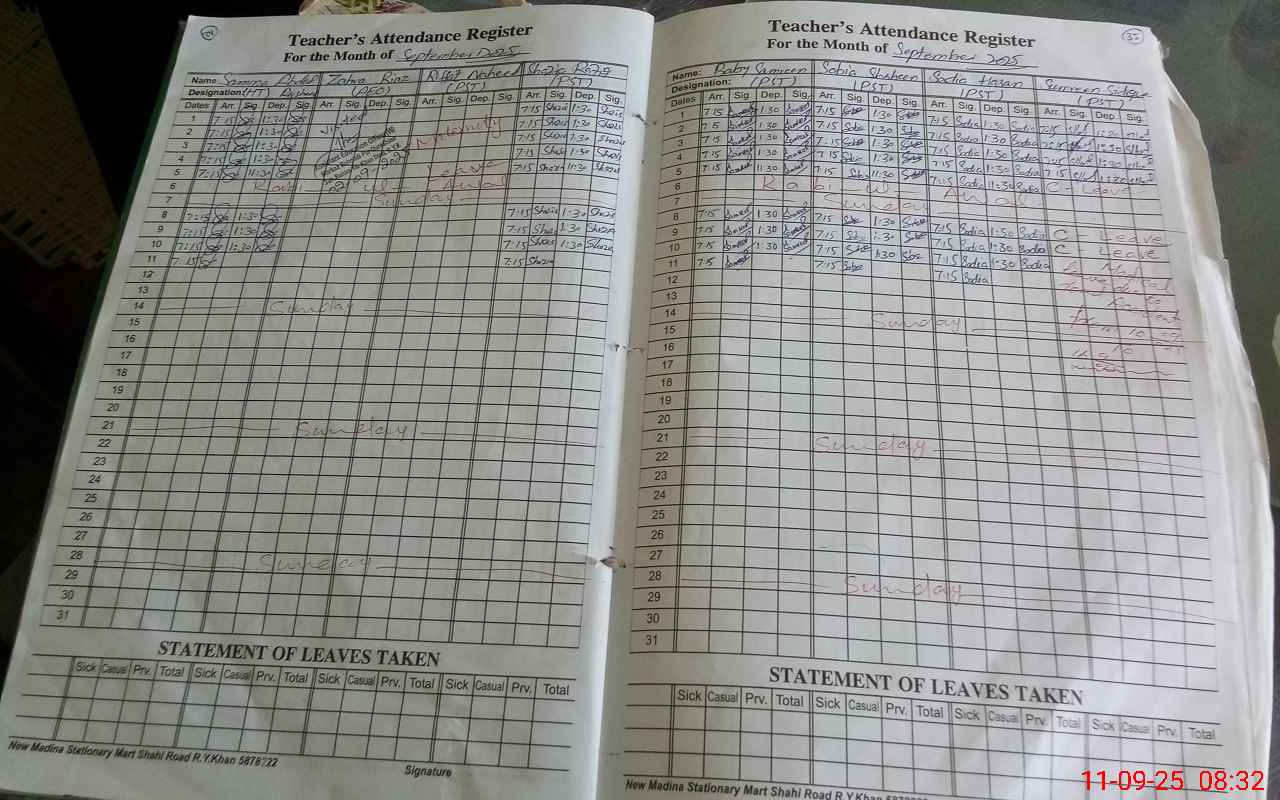 | Attendance Register | Head Teacher | MEA with School | Visit Proof |