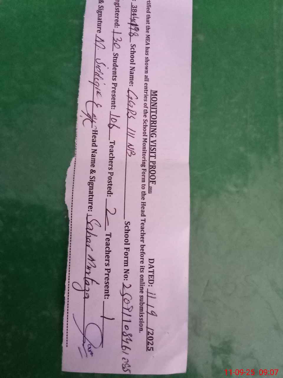 | Monitoring Date: 11-09-2025 | Start Time: 11-09-2025 08:43 AM | End Time: 11-09-2025 09:11 AM | Name of MEA: MU**** SI**** | |