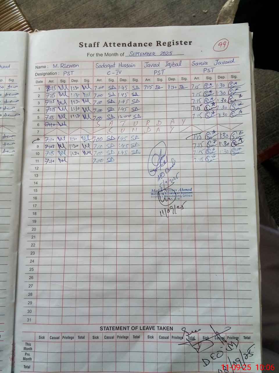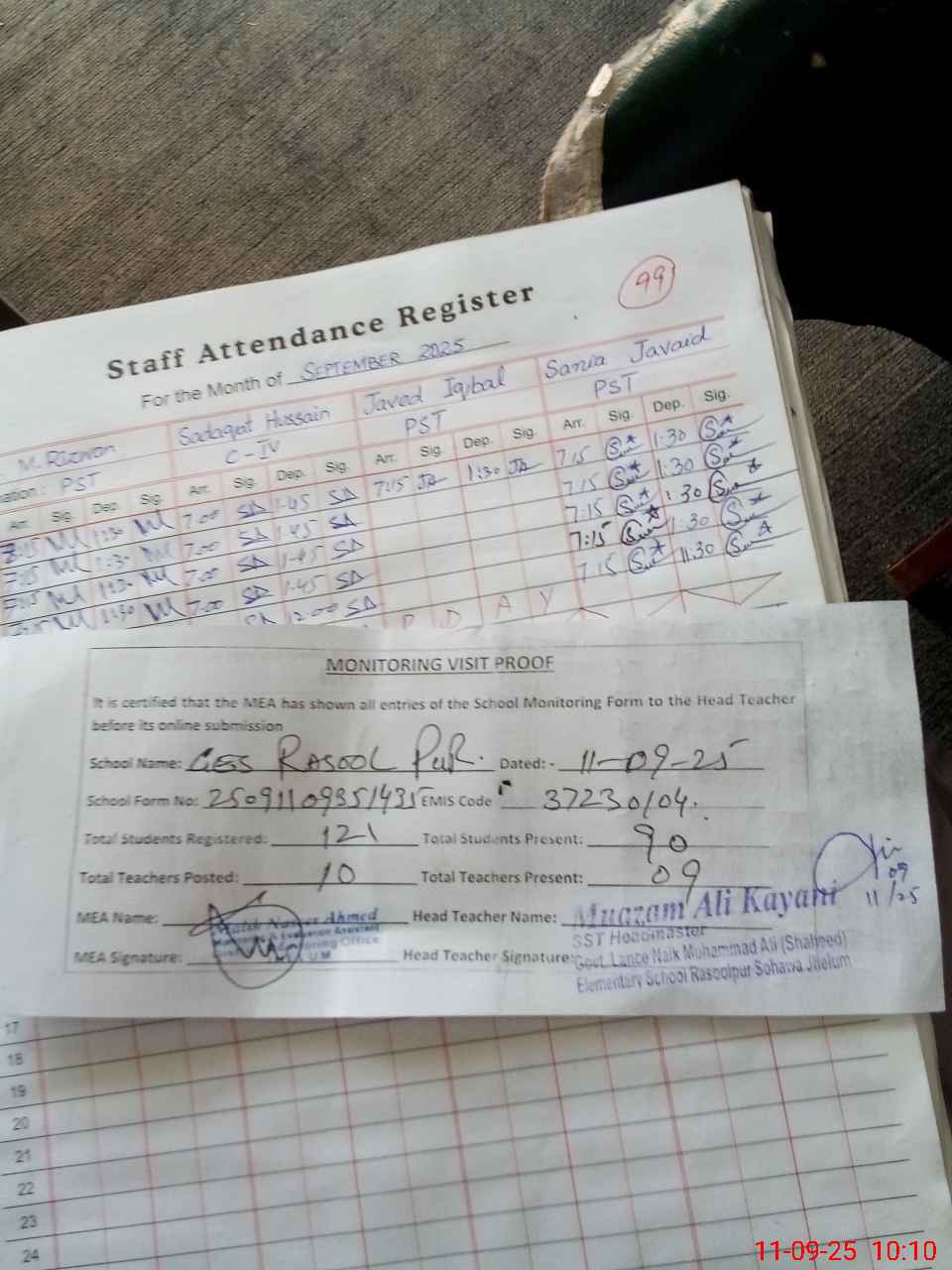 | Monitoring Date: 11-09-2025 | Start Time: 11-09-2025 09:35 AM | End Time: 11-09-2025 10:11 AM | Name of MEA: Na**** Ah**** | |