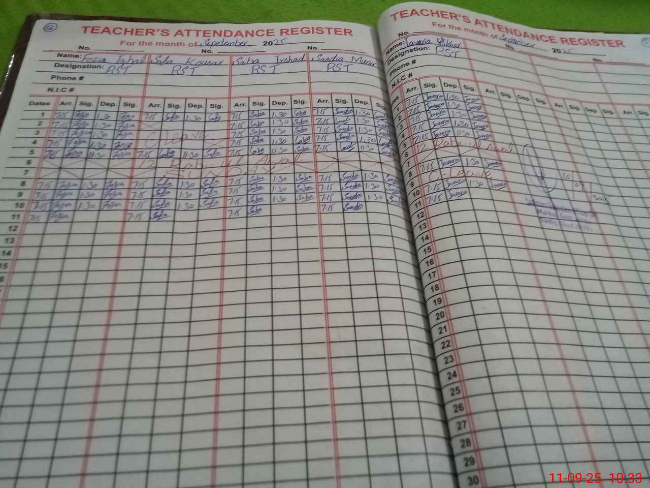 | CNIC | Full Name | Designation | R/C | Absence During Last Calender Month |