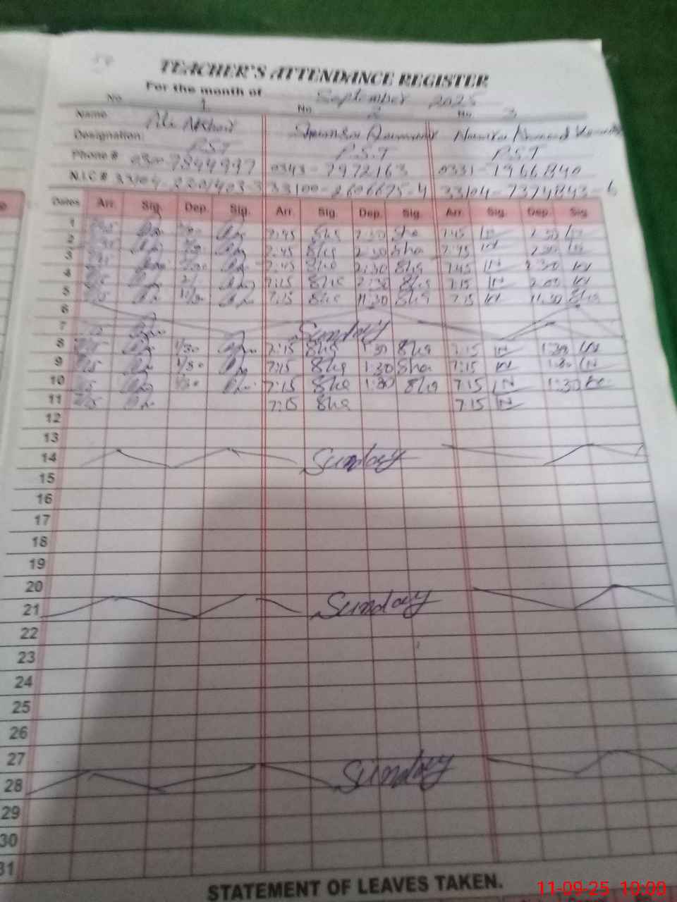 | Name: AL**** AK**** Designation: (School Headmaster's/Headmistress's) PST Phone/Cell Number: 03**** |