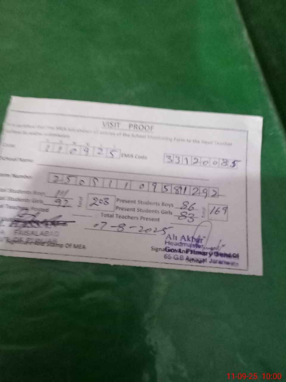 | EMIS Code: 33120085 | Name of School: GPS CHAK 65 GB | |||