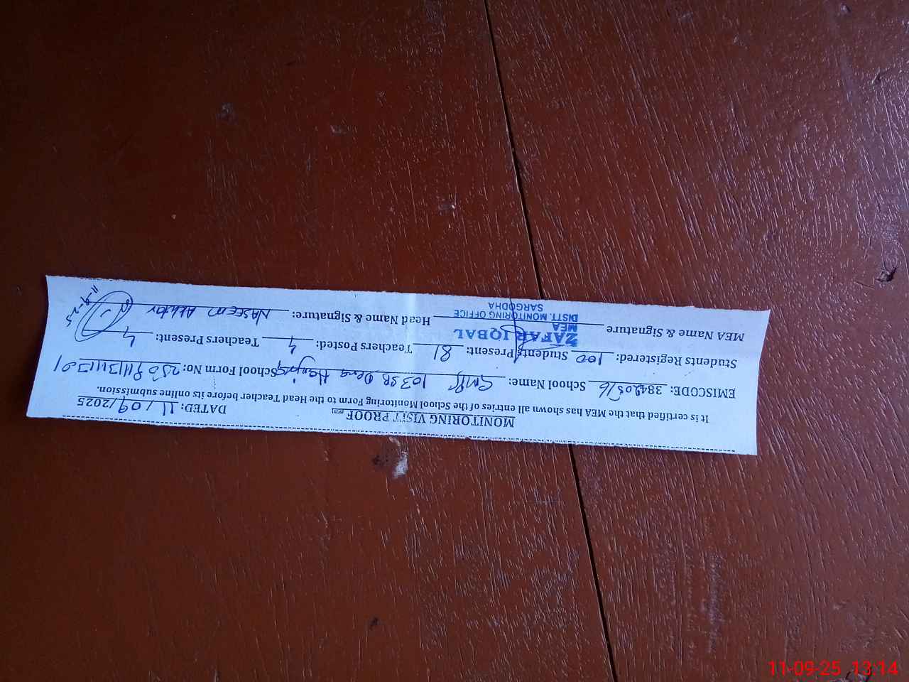 | Monitoring Date: 11-09-2025 | Start Time: 11-09-2025 12:33 PM | End Time: 11-09-2025 01:15 PM | Name of MEA: ZA**** IQ**** | |