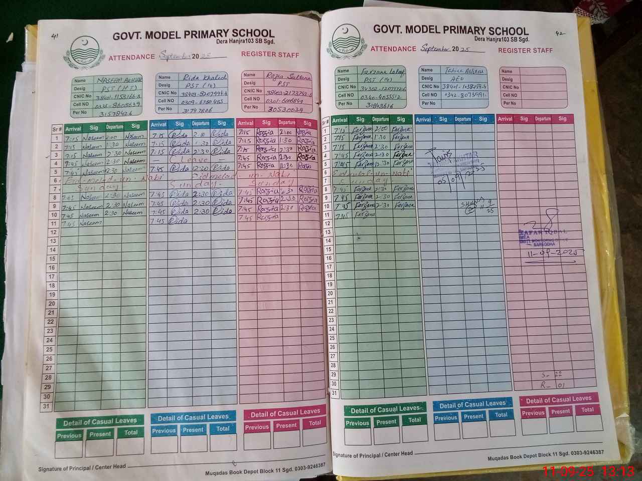 | CNIC | Full Name | Designation | R/C | Absence during last cal. month |