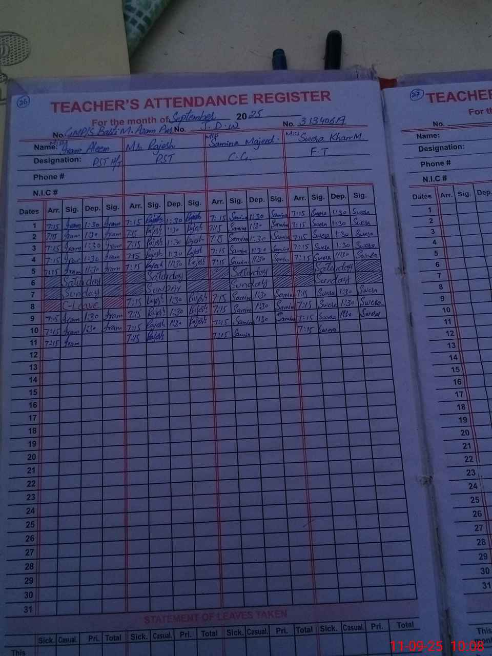 | Name: Ir**** Al**** Designation: (School Headmaster's/Headmistress's) PST Phone/Cell Number: 03**** |