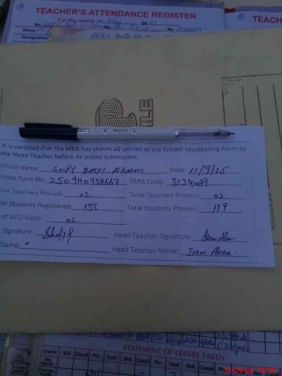 | EMIS Code: 31340619 | Name of School: GMPS BASTI MUHAMMAD AZAM | |||