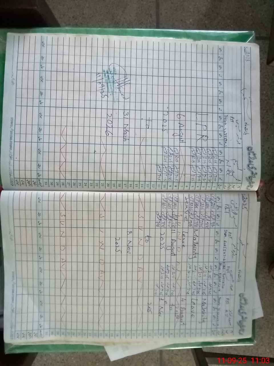 | Leave | Duty | Absent | Maternity | Medical | Ex- Pak |