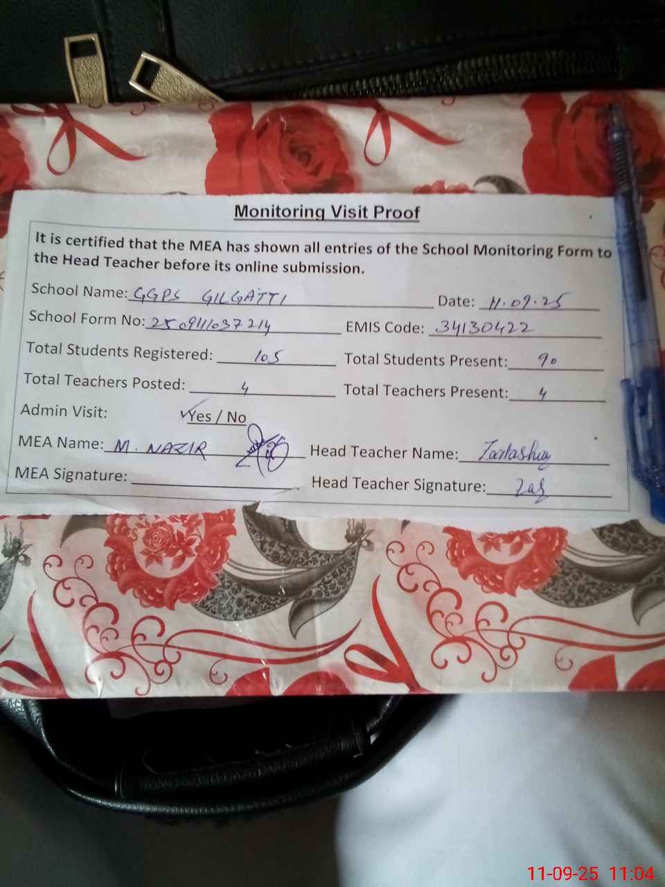 | EMIS Code: 34130422 | Name of School: GGPS GILGHITTI | |||