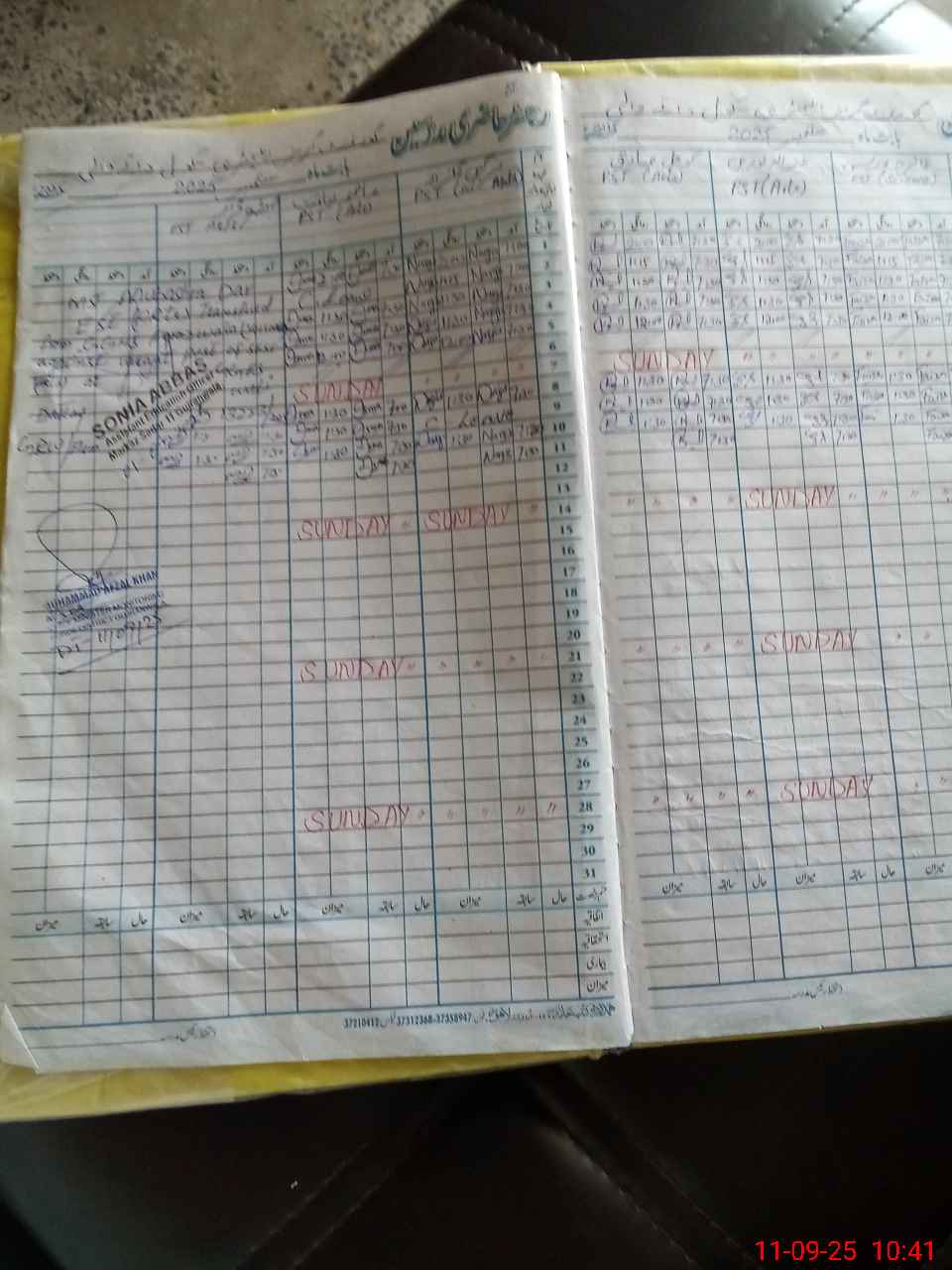 | CNIC | Full Name | Designation | R/C | Absence During Last Calender Month |