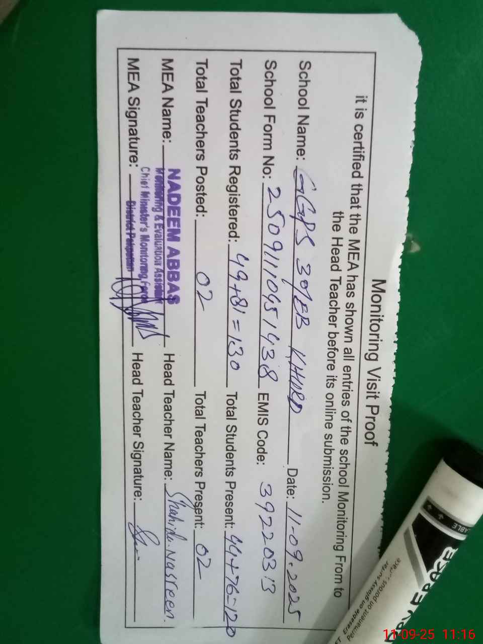 | EMIS Code: 39220313 | Name of School: GGPS CHAK 30/EB KHURD P/O 30/EB KALAN | |||