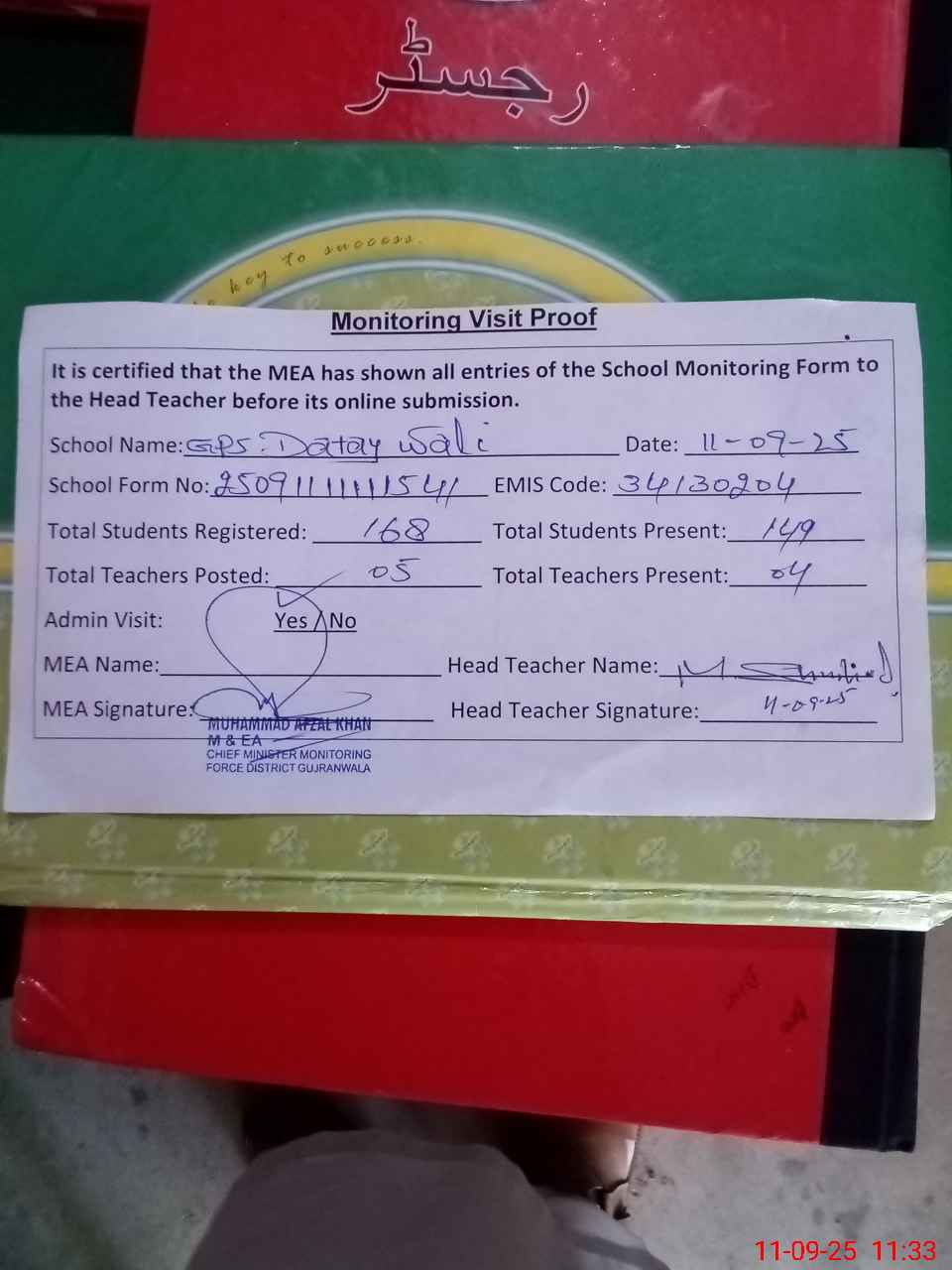 | EMIS Code: 34130204 | Name of School: GPS DATAY WALI | |||