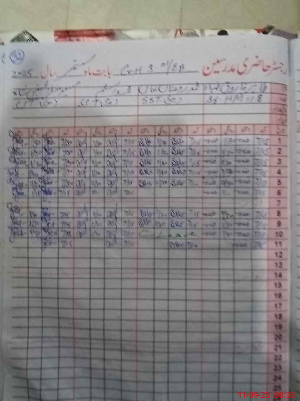 | Monitoring Date: 11-09-2025 | Start Time: 11-09-2025 08:00 AM | End Time: 11-09-2025 09:11 AM | Name of MEA: Mu**** Ab**** | |