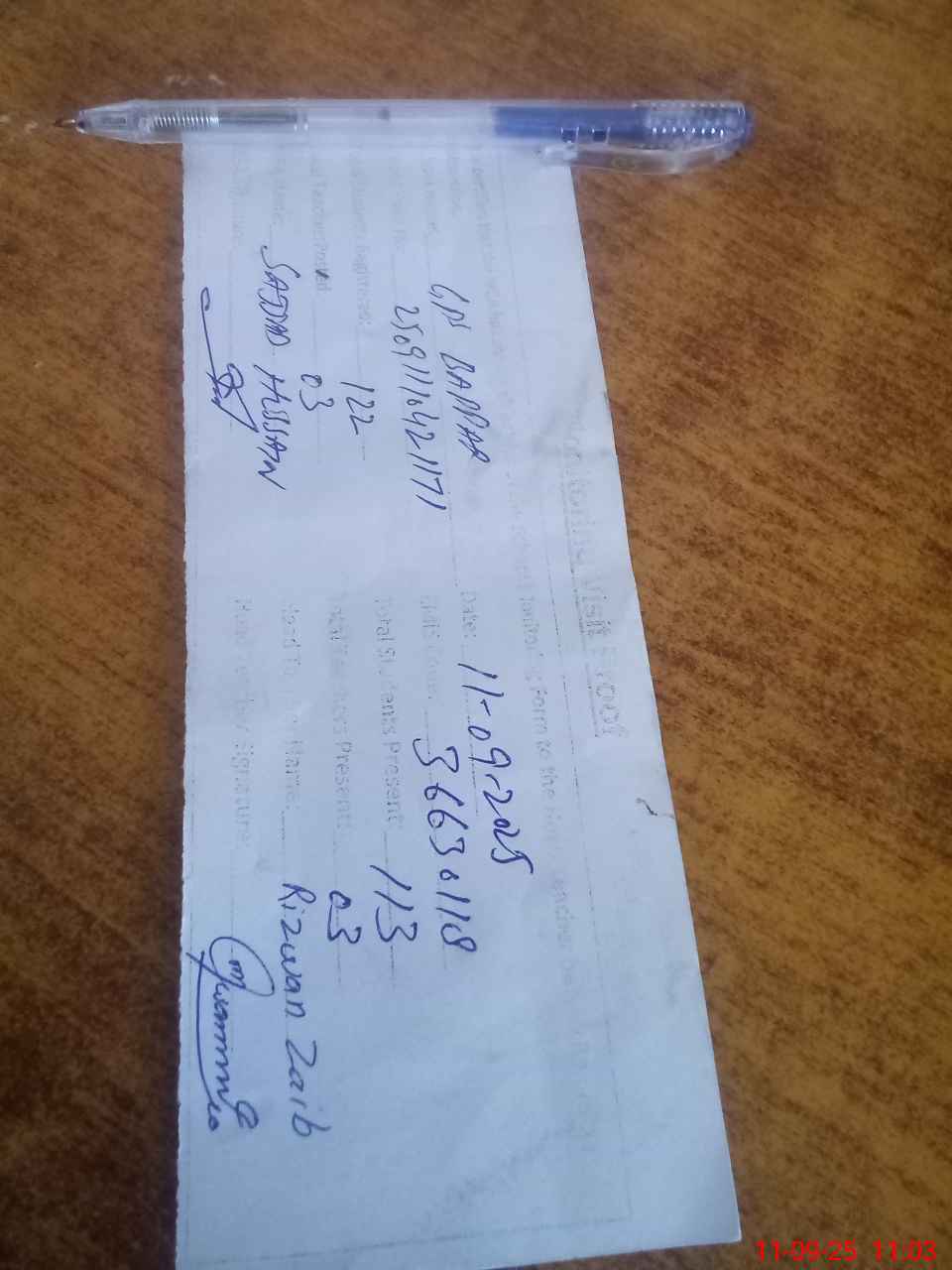 | Monitoring Date: 11-09-2025 | Start Time: 11-09-2025 10:42 AM | End Time: 11-09-2025 11:03 AM | Name of MEA: Kh**** Sa**** Hu**** | |
