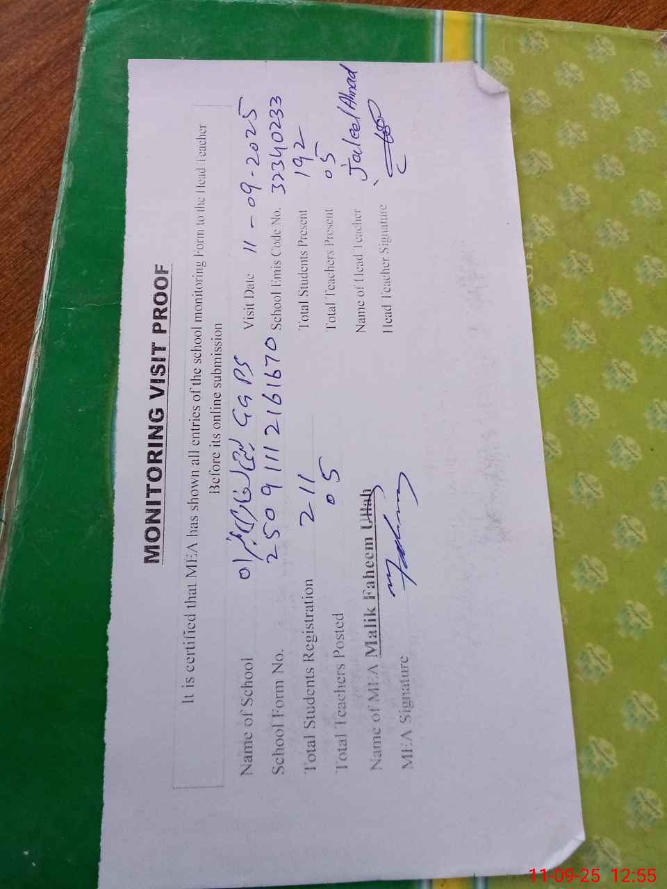 | Certified that this School was Inspected by the Undersigned MEA/DMO Today and the Information Stated Above is as Per Record. | |||||