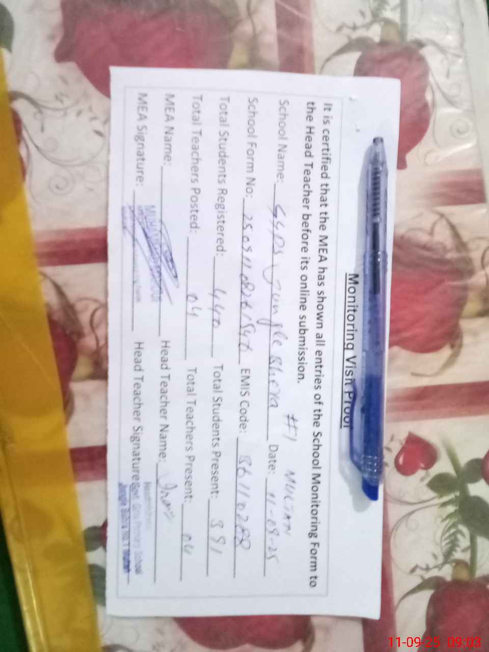 | Certified that this School was Inspected by the Undersigned MEA/DMO Today and the Information Stated Above is as Per Record. | |||||