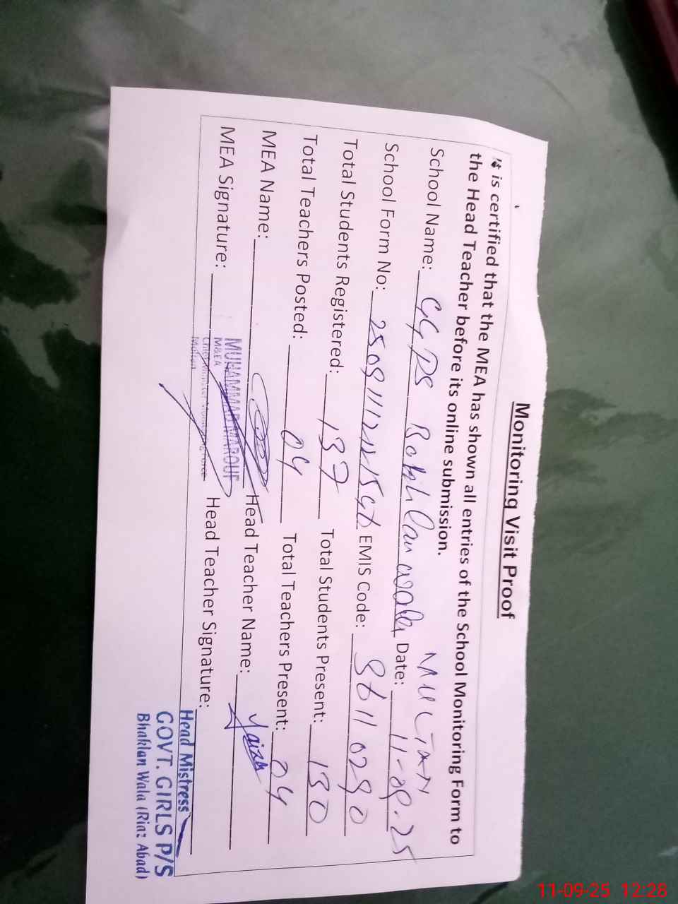 | EMIS Code: 36110290 | Name of School: GGPS BHAKLAN WALA OLD DUNYAPUR ROAD | |||