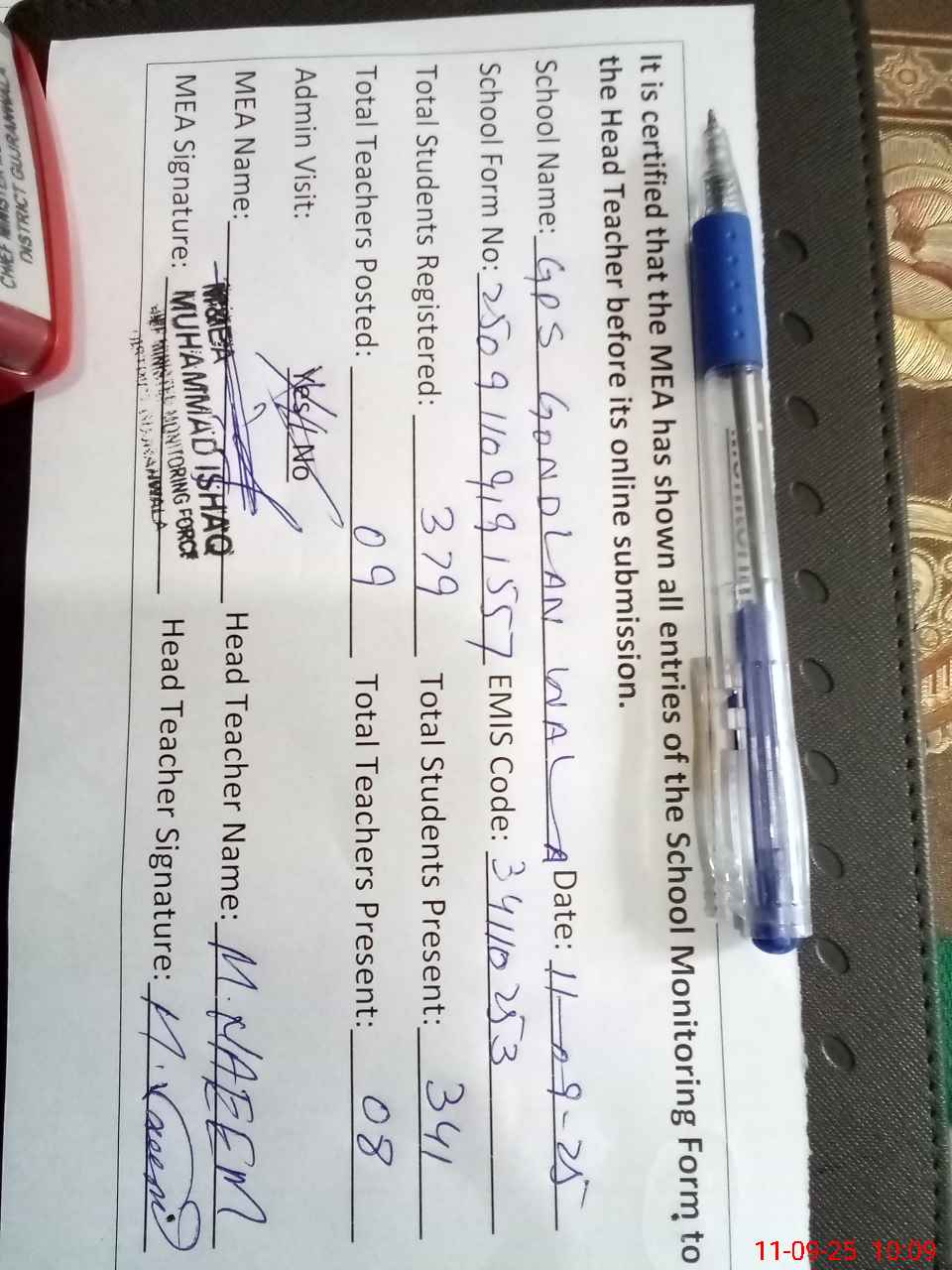 | EMIS Code: 34110253 | Name of School: GPS GONDLAN WALA | |||