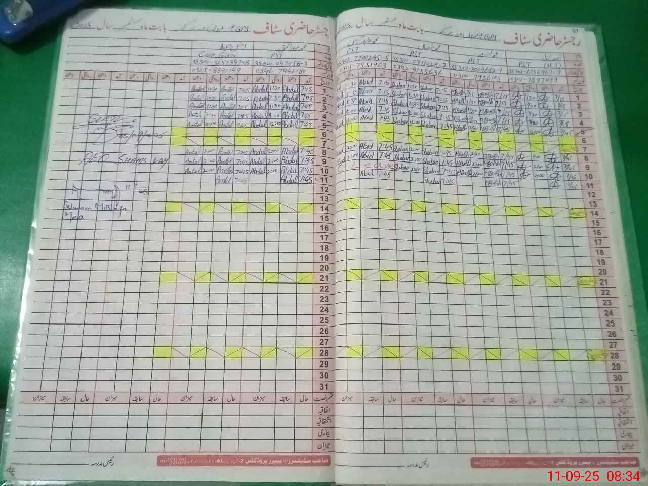 | CNIC | Full Name | Designation | R/C | Absence During Last Calender Month |