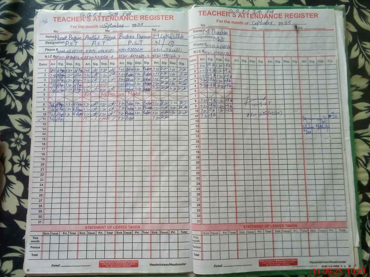 | Name: Ra**** Be**** Designation: (School Headmaster's/Headmistress's) HEADMISTRESS Phone/Cell Number: 03**** |
