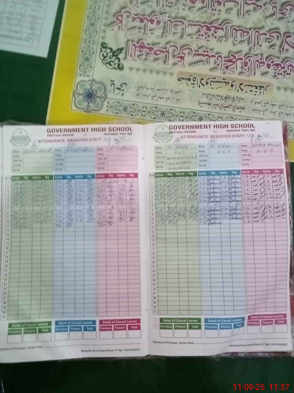 | CNIC | Full Name | Designation | R/C | Absence During Last Calender Month |