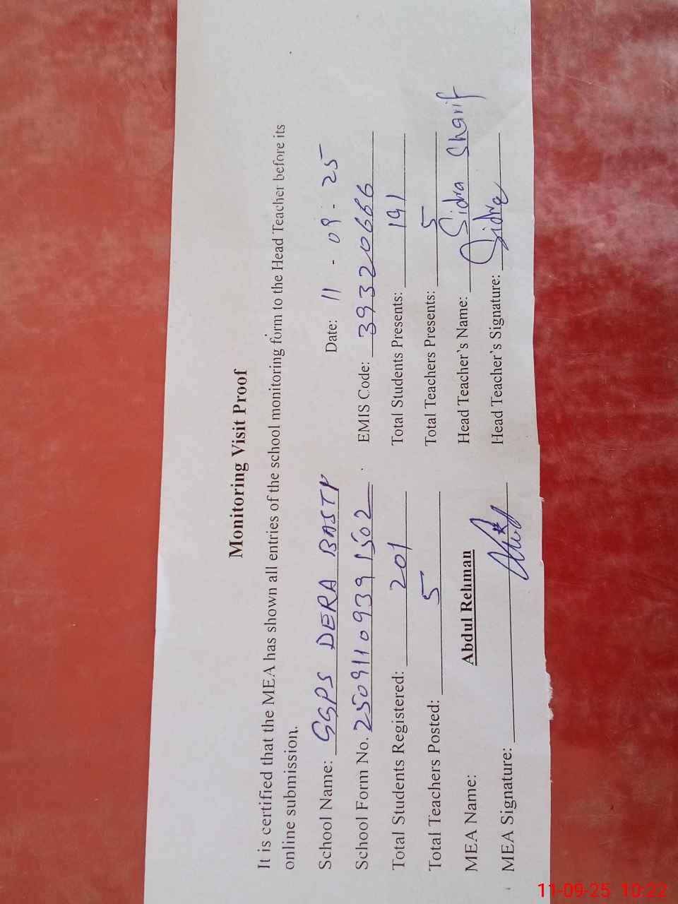 | EMIS Code: 39320666 | Name of School: GGPS DERA BASTI | |||