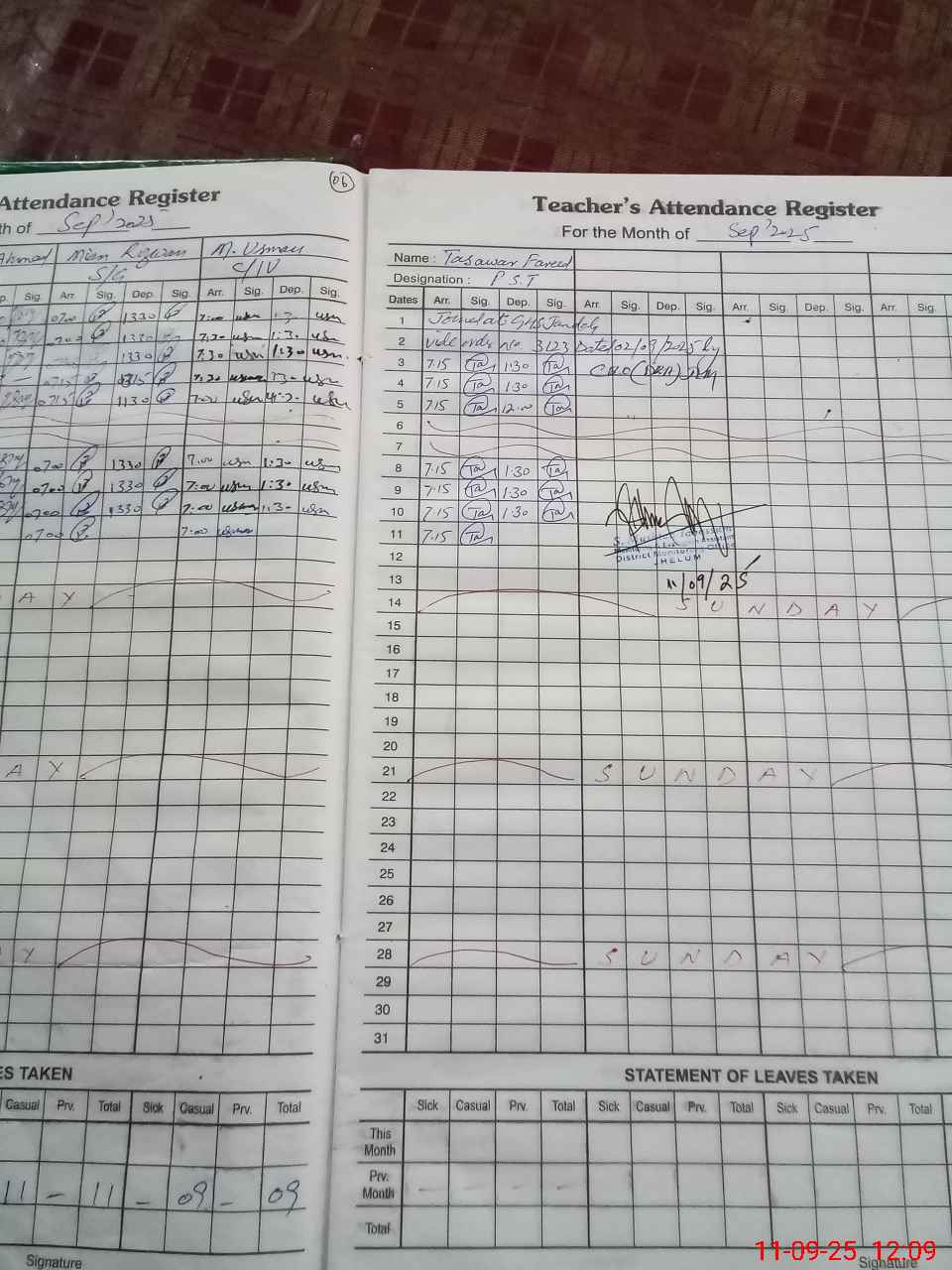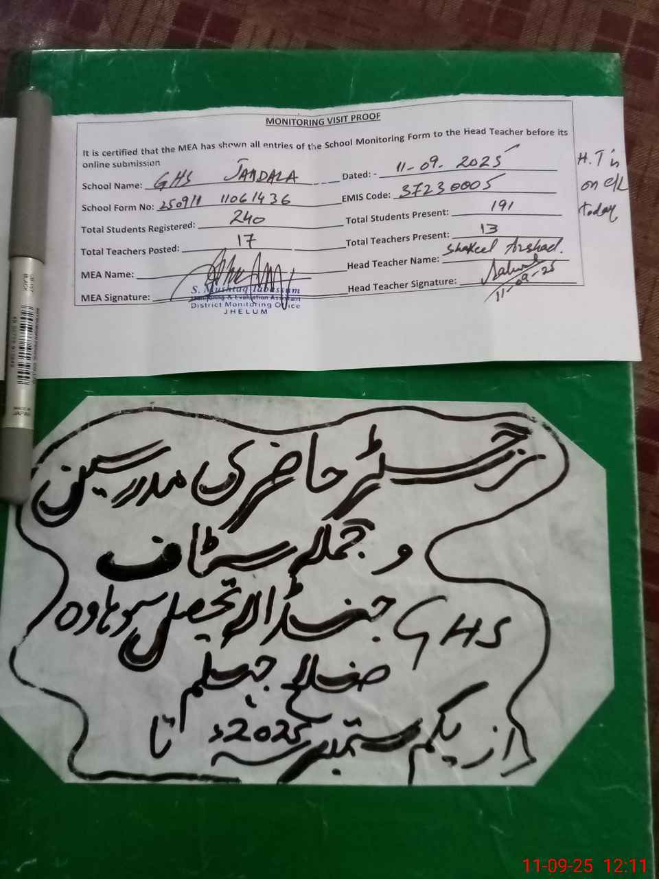 | Attendance Register | Head Teacher | MEA with School | Visit Proof |