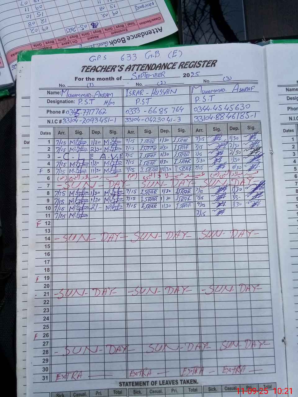 | Name: Mu**** Ak**** Designation: (School Headmaster's/Headmistress's) PST Phone/Cell Number: 03**** |