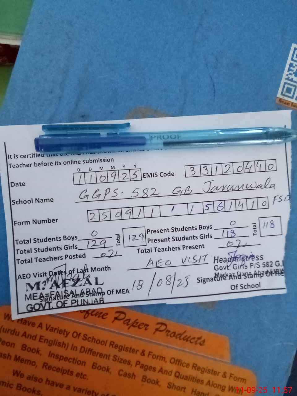 | Attendance Register | Head Teacher | MEA with School | Visit Proof |