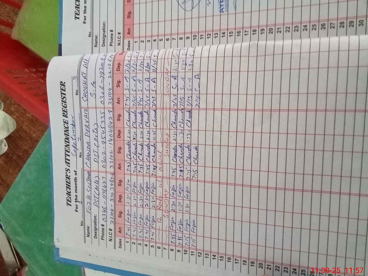 | Name: FO**** SU**** Designation: (School Headmaster's/Headmistress's) PST Phone/Cell Number: 03**** |
