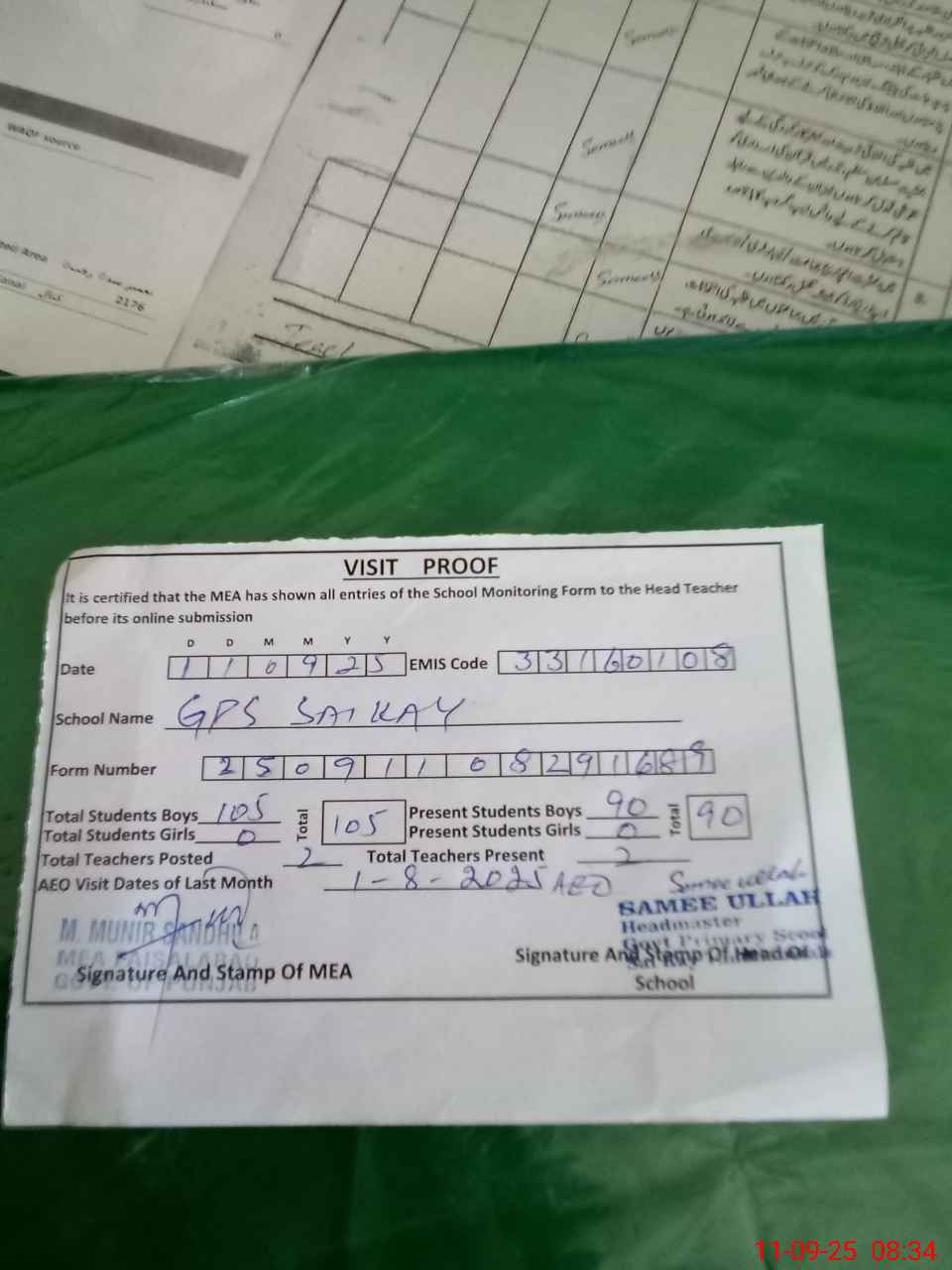 | EMIS Code: 33160108 | Name of School: GPS THATHA SAIKAY | |||