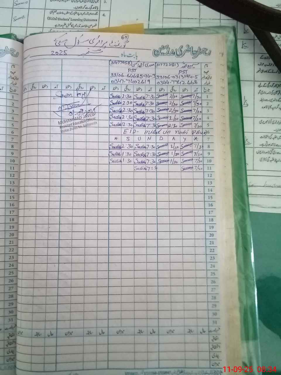 | Name: SA**** UL**** Designation: (School Headmaster's/Headmistress's) PST Phone/Cell Number: 03**** |