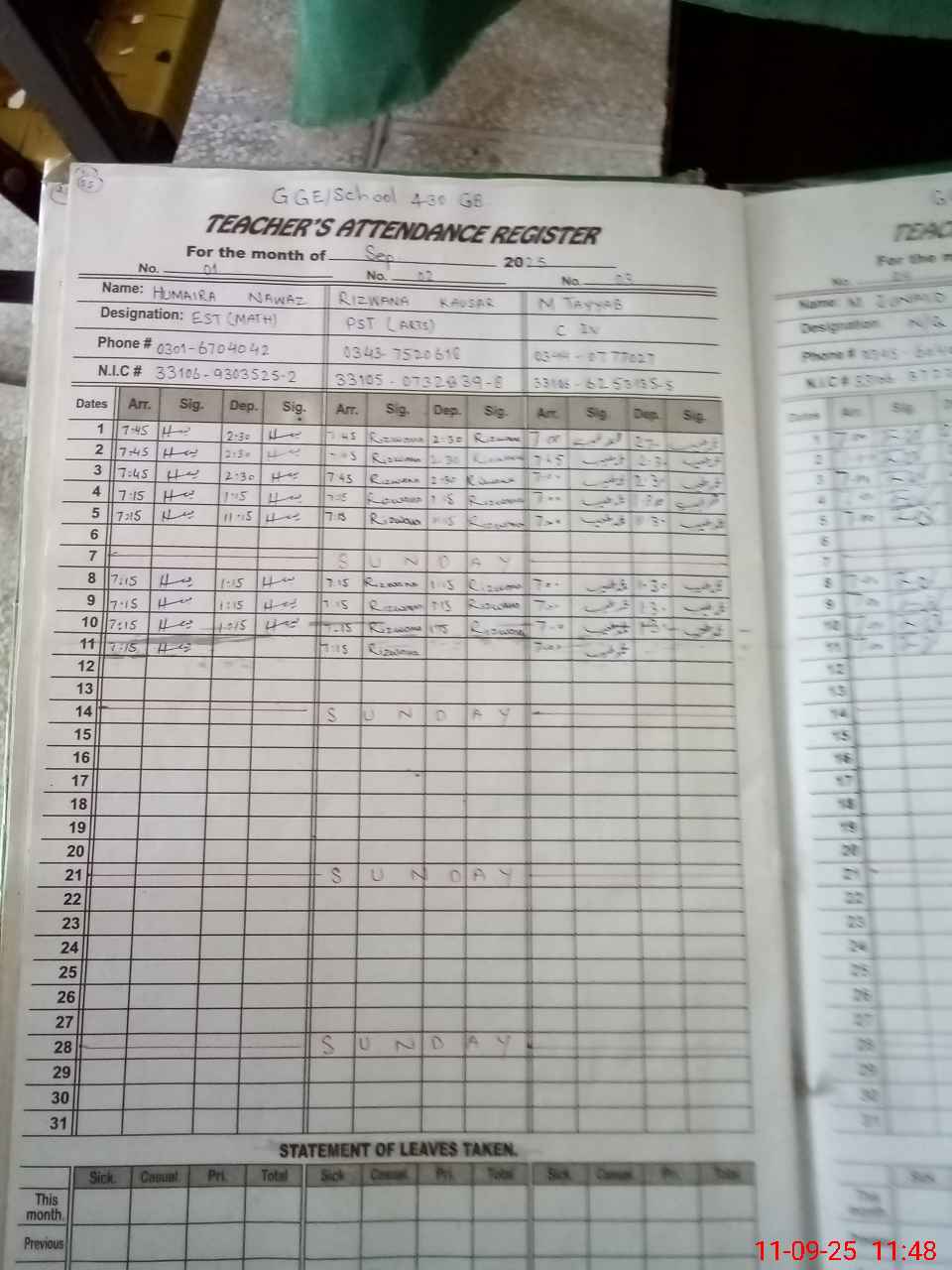 | Name: HU**** NA**** Designation: (School Headmaster's/Headmistress's) EST (MATH ) Phone/Cell Number: 03**** |