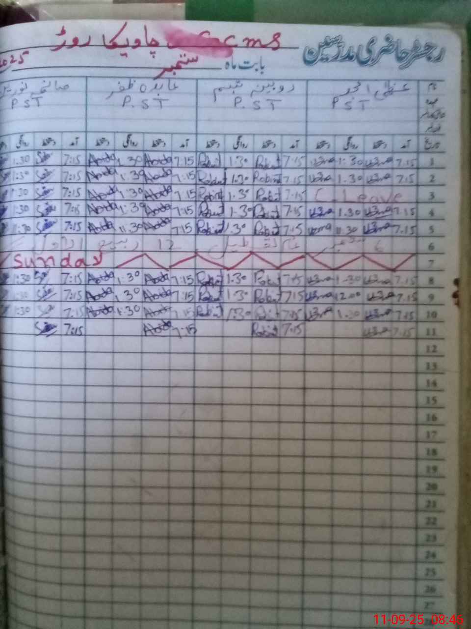 | CNIC | Full Name | Designation | R/C | Absence During Last Calender Month |