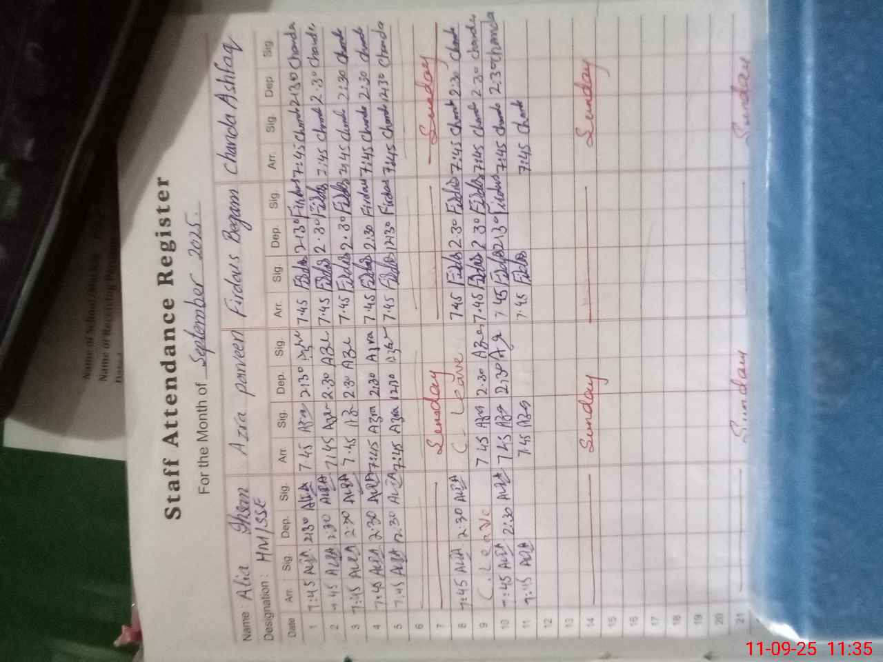 | Remarks (Use Separate Page if Required): Wash club not functional School has 09 rooms while 02 room locally dangerous and not in use Council Meeting not conducted in August 25 35220314 | |||||