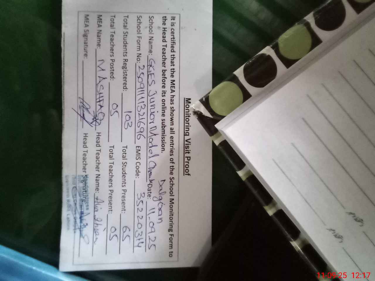 | EMIS Code: 35220314 | Name of School: GGES JUNIOR MODEL CHOWK DALGIRAN (EX-MCL) | |||